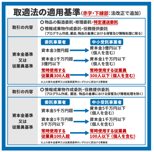 今回の改正の最大の目玉は、「資本金だけでなく従業員数も基準に加わったこと」と「価格交渉のルール化」です。